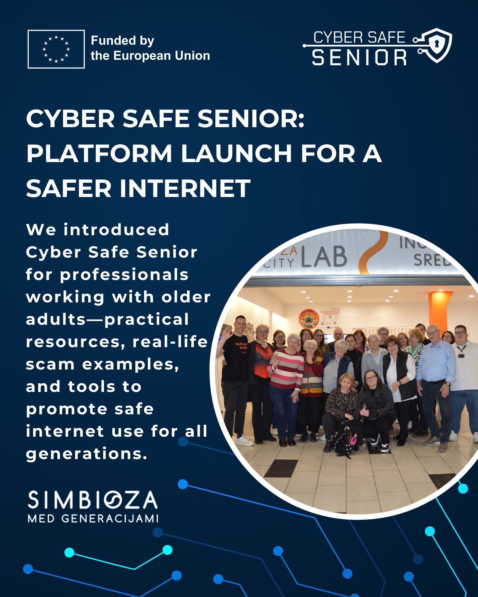 At a professional event at Simbioza, we introduced Cyber Safe Senior, a new platform for those working with older adults. It offers practical resources, real-life examples of online scams, and tools to help ensure safe internet use across all generations.